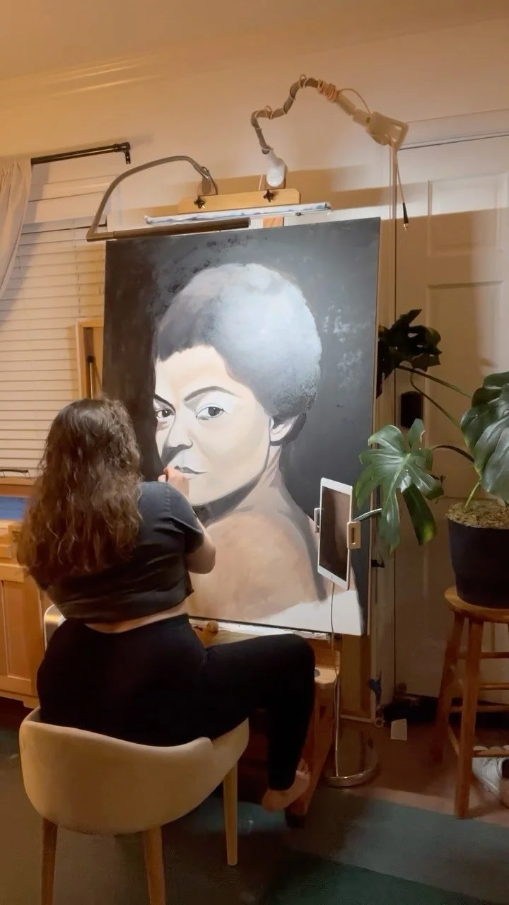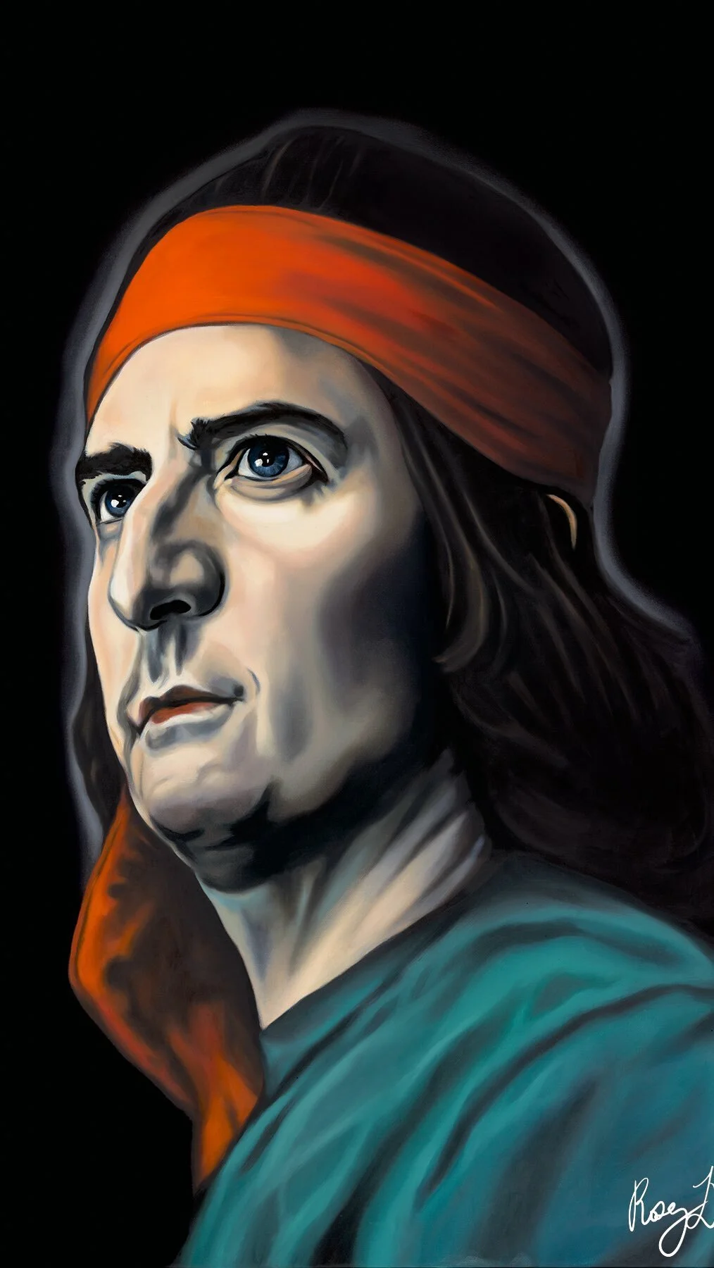 Originally from New York City and the third of nine siblings—think Wu-Tang Clan meets the Fellowship of the Ring—I grew up immersed in a chaotic, collaborative energy that still fuels my creative process. My practice blends realism with the esoteric, drawing inspiration from a wide spectrum of sources, from MF DOOM to the Tarot. I primarily work in oil and mixed media on canvas, often incorporating classical techniques like gold leafing.